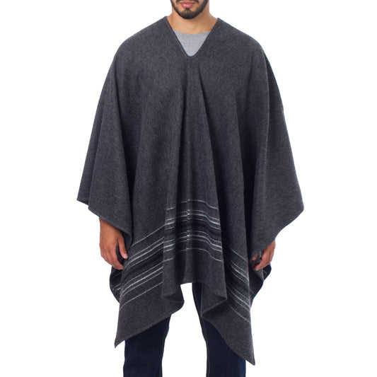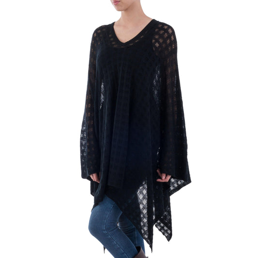 Inca Contrast Black and Russet Alpaca Blend Poncho from Peru