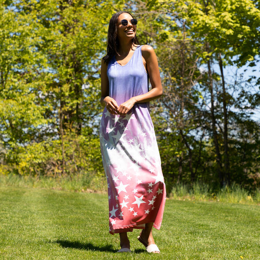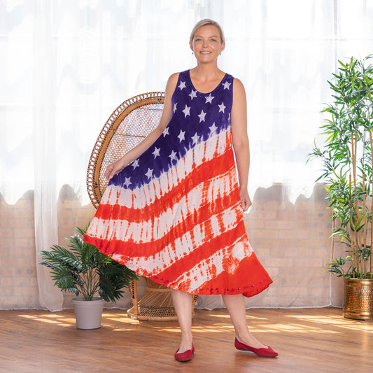 Diagonal Stars & Stripes Sleeveless Long Dress