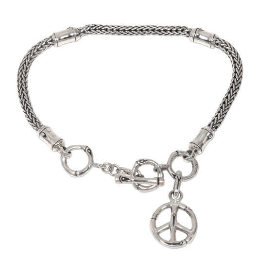 Peaceful Bamboo Artisan Crafted Sterling Silver Bracelet with Peace Charm