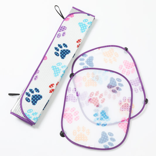 Double Paw Plaid Foldable Windshield Sun Shade - 3 Piece Set