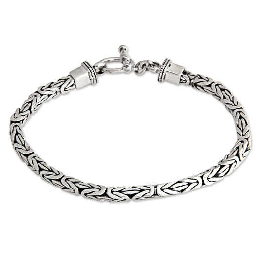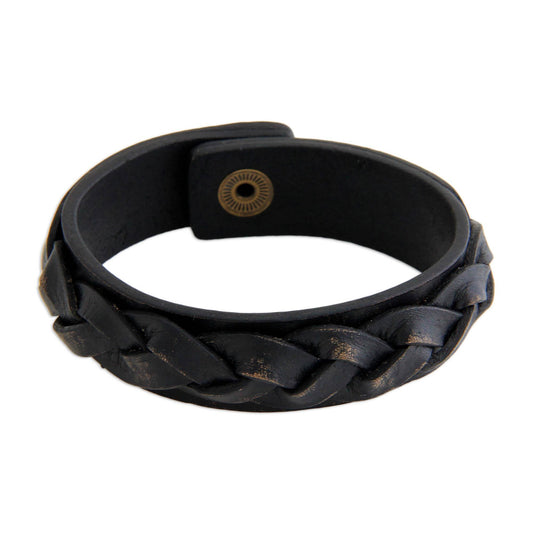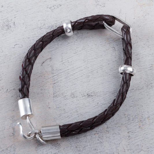 Men's Brown Leather & Sterling Silver Braided Bracelet