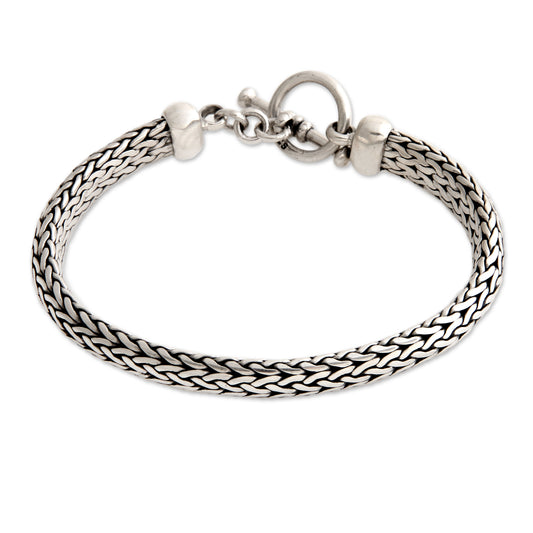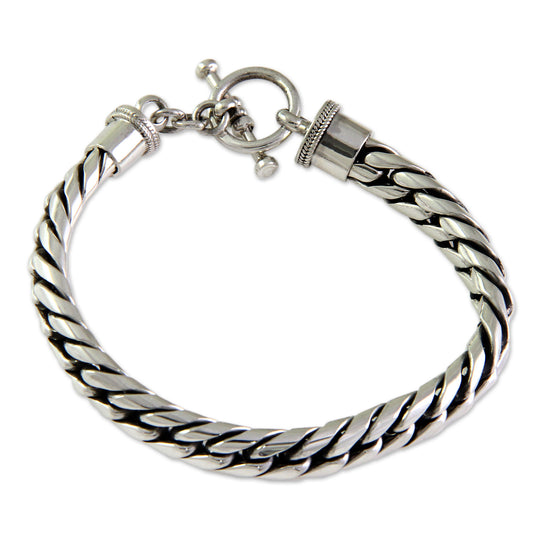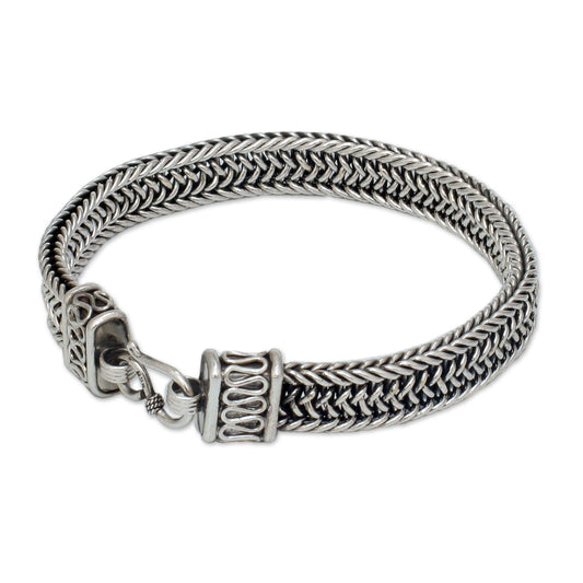 Cobra Men's Black Leather Bracelet with Silver Snake Clasp