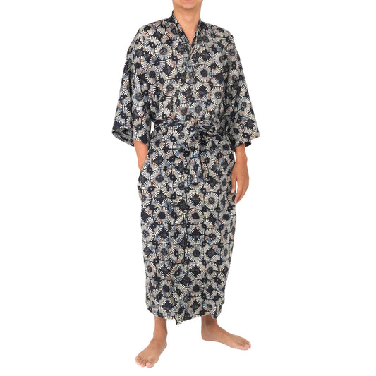 Men's Cotton Midnight Fireworks Blue Batik Robe