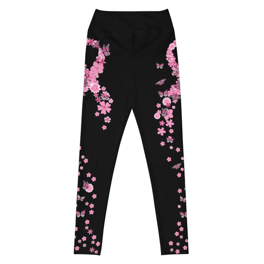 Pink Ribbon Butterflies Take Flight Yoga Leggings