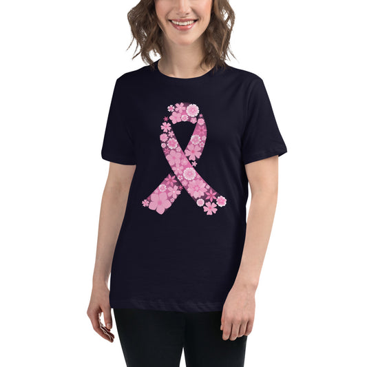 Pink Ribbon Floral Women's Relaxed T-Shirt