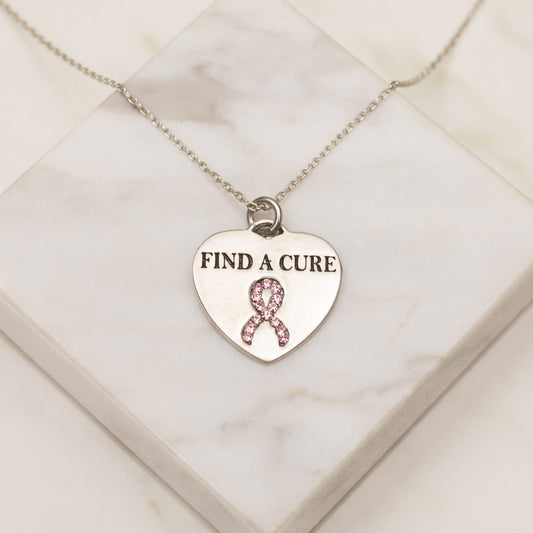 Live, Laugh, Love Pink Ribbon Heart Necklace