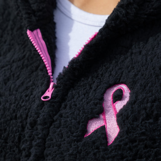 Pink Ribbon Plush Sherpa Fleece Zip Up Hooded Jacket