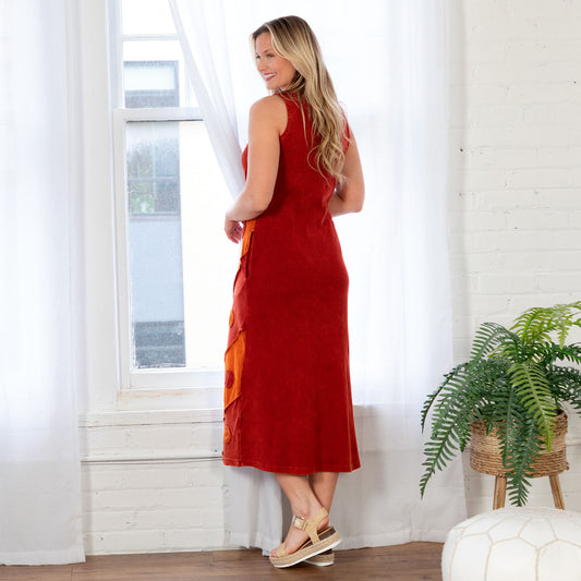 Diagonal Rays Long Sleeveless Dress