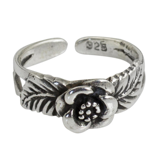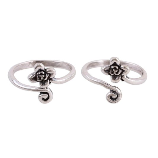 Flower and Swirl Flower Motif Toe Rings Handmade in Sterling Silver (Pair)