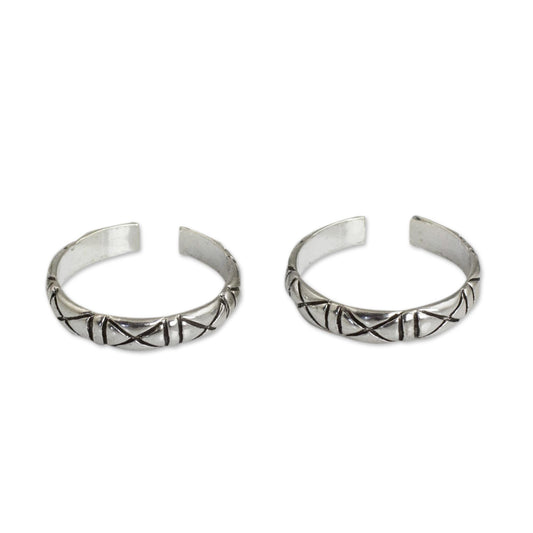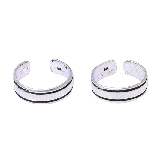Divine Minimalism Sterling Silver Adjustable Striped Pair of Toe Rings