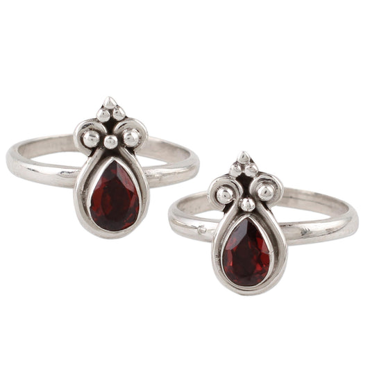 Scarlet Drops Pair of Teardrop Garnet and 925 Silver Toe Rings from India