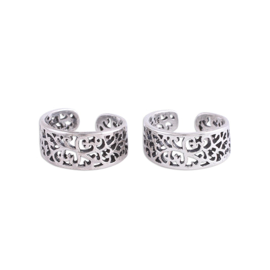Alluring Vines Artisan Crafted Sterling Silver Toe Rings (Pair) from India