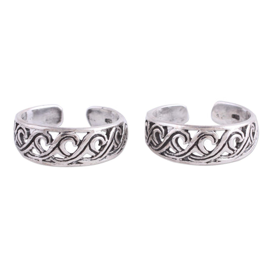 Fascinating Swirls Handcrafted Sterling Silver Pair of Toe Rings from India