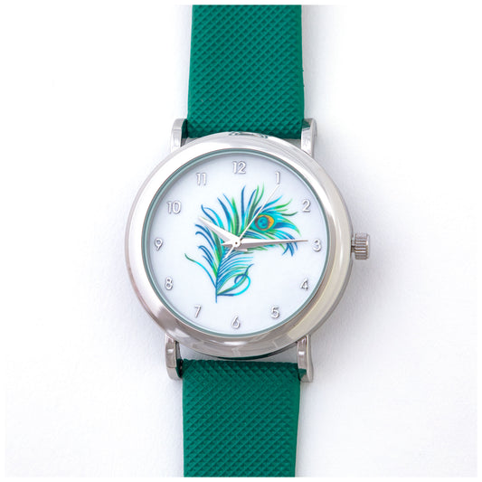 Green Peacock Feather Watch