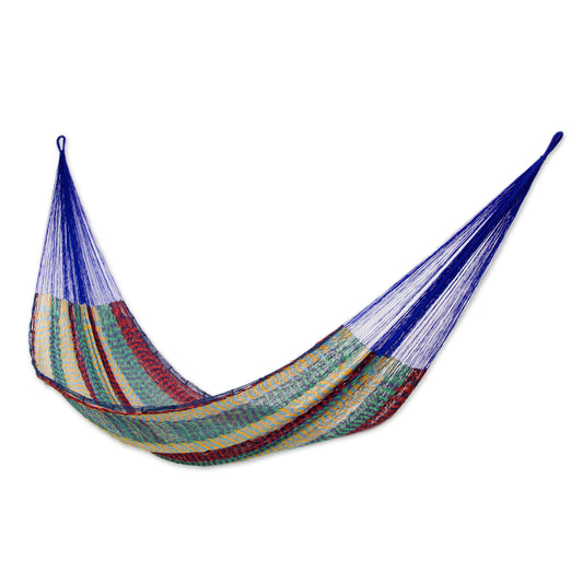 Blue Caribbean Hand Woven Mayan Rope 2 Person Hammock