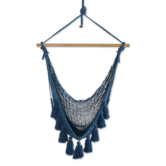 Ocean Seat Blue Cotton Mayan Hammock Swing from Mexico (Single)