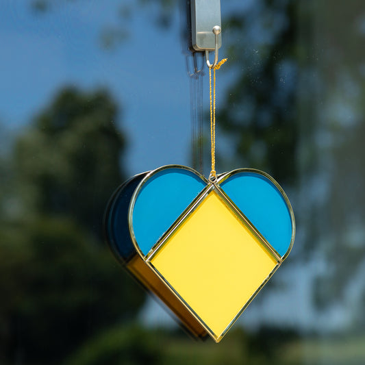 Stand with Ukraine Glass Heart